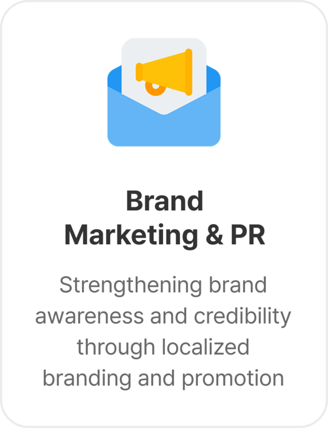 Through digital marketing, PR, and content strategies, we effectively enhance brand awareness and credibility in each market.