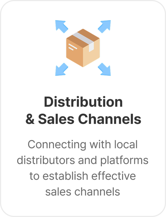 Based on our network of local distributors, platforms, and partners, we support the entire process—from identifying distribution and sales channels to negotiation and contract facilitation—driving tangible business results.
